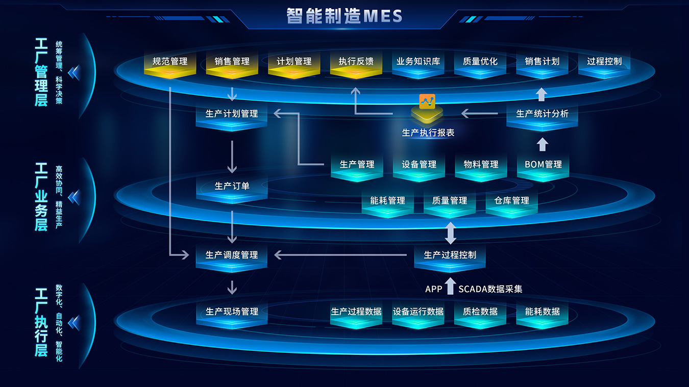 生產(chǎn)制造執(zhí)行MES(Manufacturing Execution System)是連接企業(yè)計(jì)劃層(如ERP)與車間控制層(如PLC、SCADA)的核心管理系統(tǒng),專注于生產(chǎn)現(xiàn)場(chǎng)的實(shí)時(shí)監(jiān)控、數(shù)據(jù)采集與流程優(yōu)化。它通過(guò)整合生產(chǎn)計(jì)劃、設(shè)備狀態(tài)、物料流動(dòng)和質(zhì)量控制等數(shù)據(jù),實(shí)現(xiàn)生產(chǎn)過(guò)程透明化、資源高效配置,并支持企業(yè)實(shí)現(xiàn)精益生產(chǎn)和智能制造目標(biāo)。